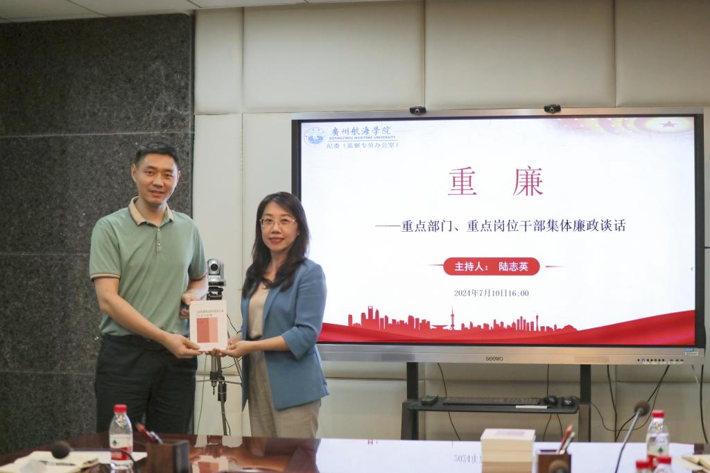 在今年的党纪学习教育中,学校纪委加强分类分层施教,精准锚定“权力集中、资金密集、资源富集”的重点部门、重点岗位干部开展廉政谈话提醒。来自党委组织部、人力资源部、财务部、基建后勤管理部、实验室与资产装备部、招投标中心等部门的14名干部,一起观看了两个生动的正反面纪法小课微视频:《坚守初心》和《刘洪华:晚节不保,退休十余年后仍被查处》。陆志英向与会干部赠送了《习近平关于全面加强党的纪律建设的论述摘编》和《高校系统违纪违法行为认定与处理》等纪律教育读本。